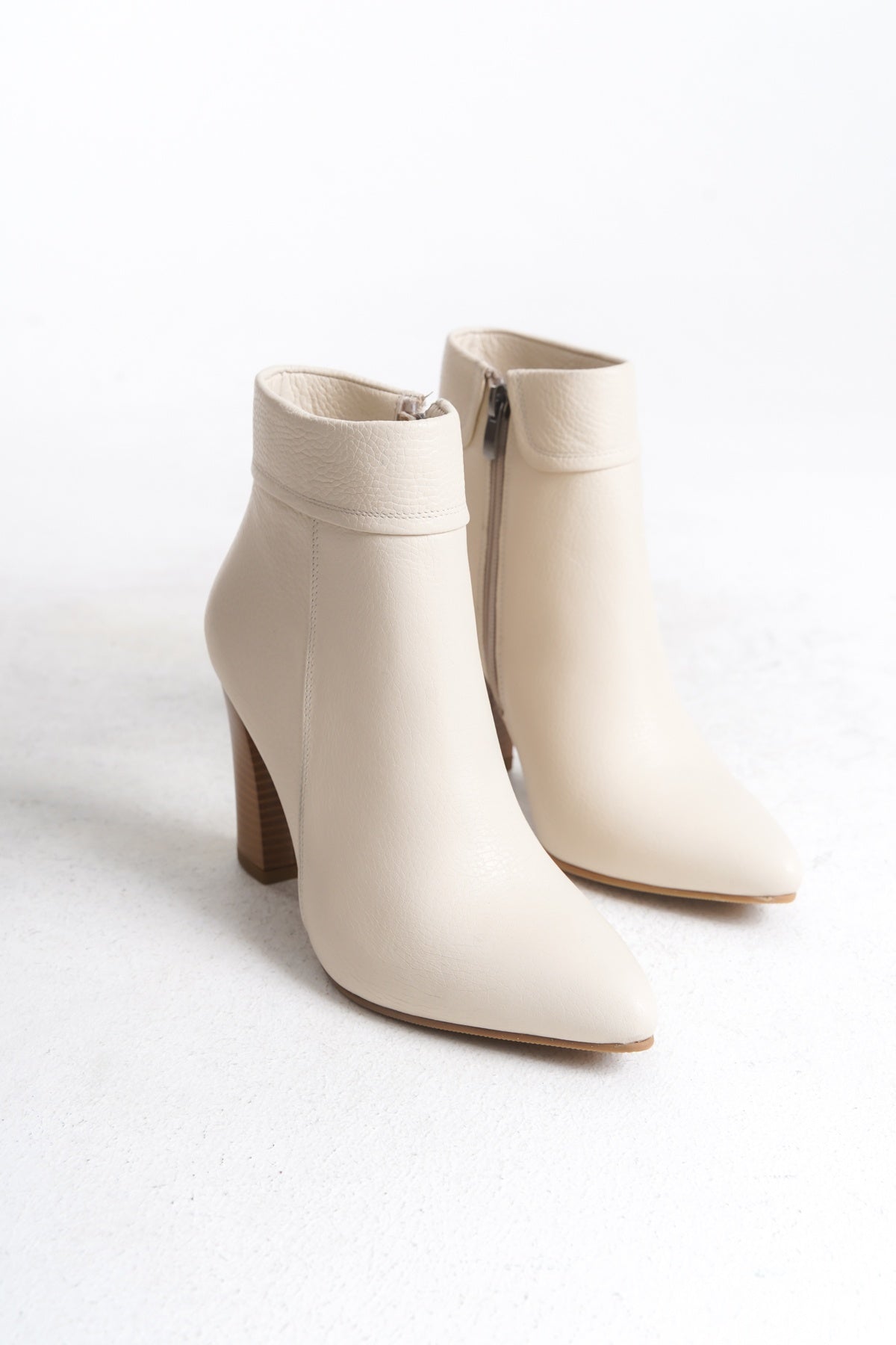 Kadın Hakiki Deri Topuklu Bot – El Yapımı, Şık Tasarım Bej Bot | OBEN AYAKKABI