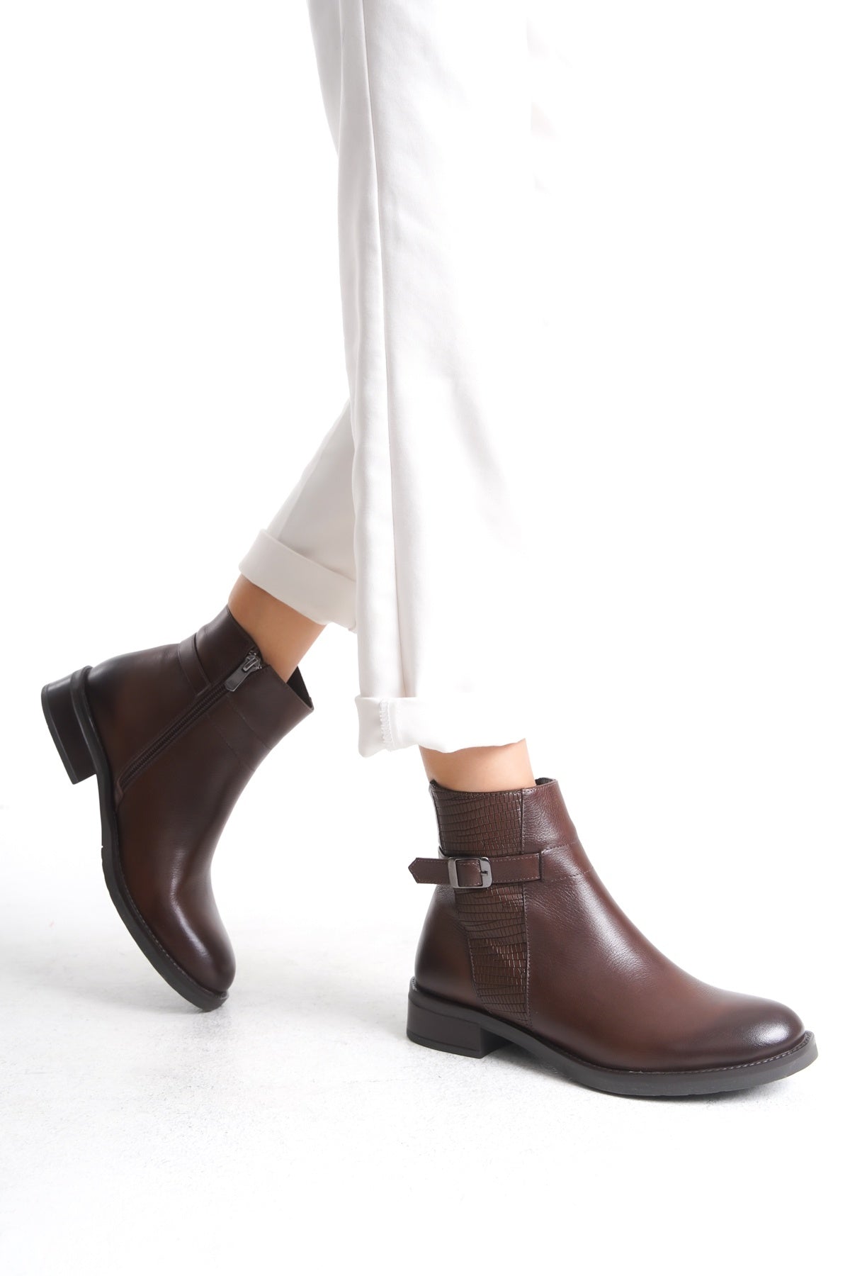 El yapımı %100 hakiki deri kadın bot, üstün kalite ve konforu bir araya getiriyor. Dışı ve iç astarı tamamen birinci sınıf yumuşak deriden üretilmiştir. Nefes alan yapısı sayesinde ayağınızı gün boyu kuru ve rahat tutar.